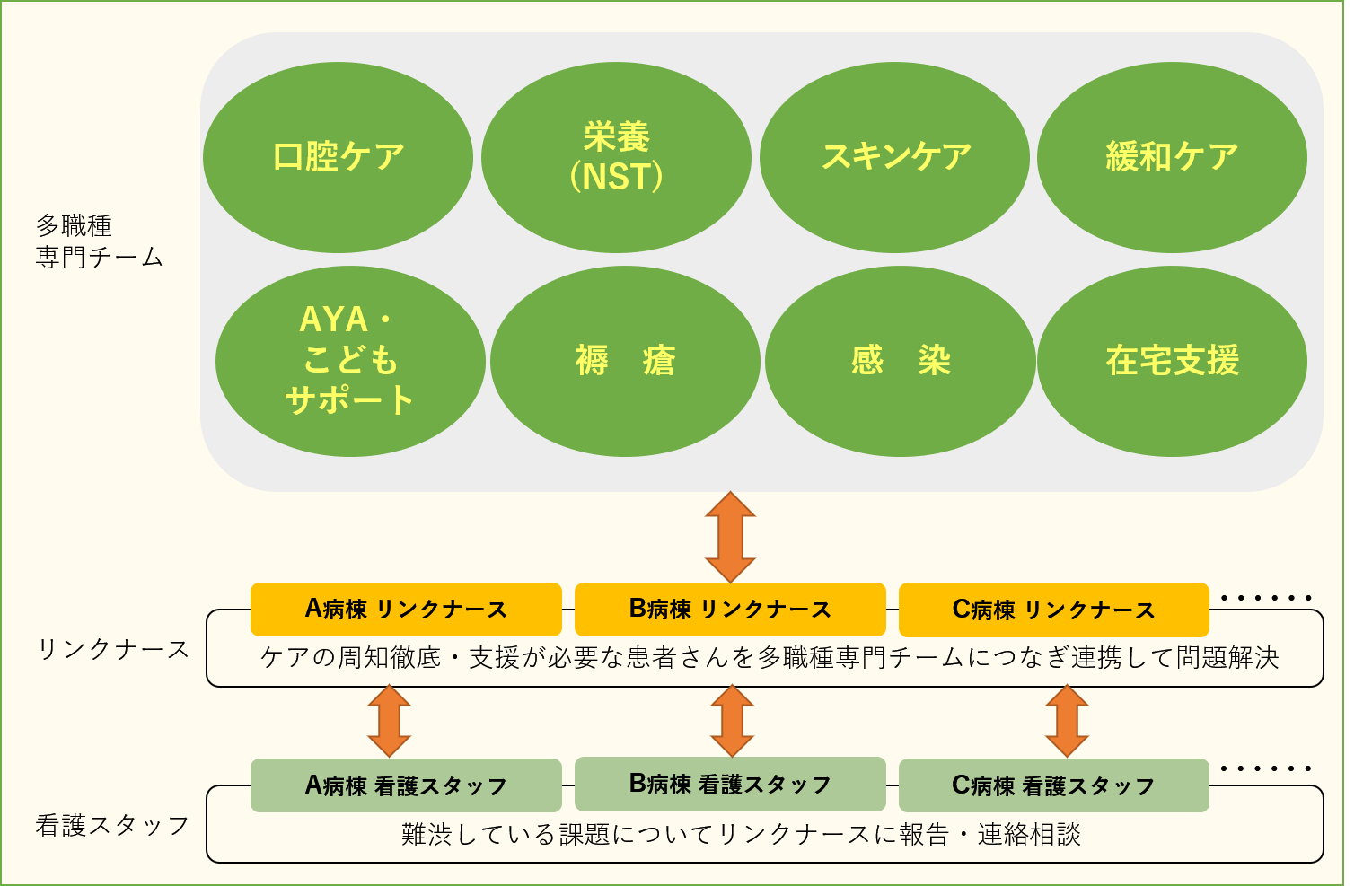 各部署のリンクナースと各専門チームとの関係を示した概念図