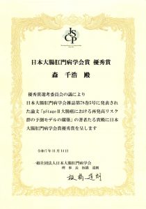 森千浩医師、日本大腸肛門病学会賞2025年優秀賞を受賞しました