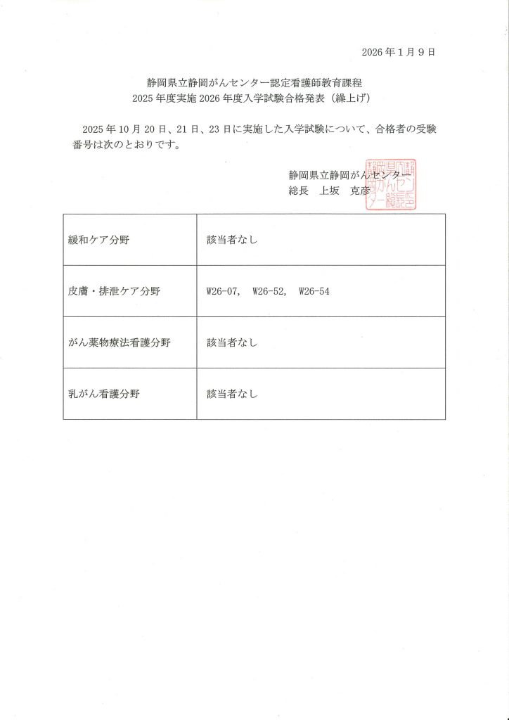 2025年度実施2026年度入学試験合格発表(繰上げ)