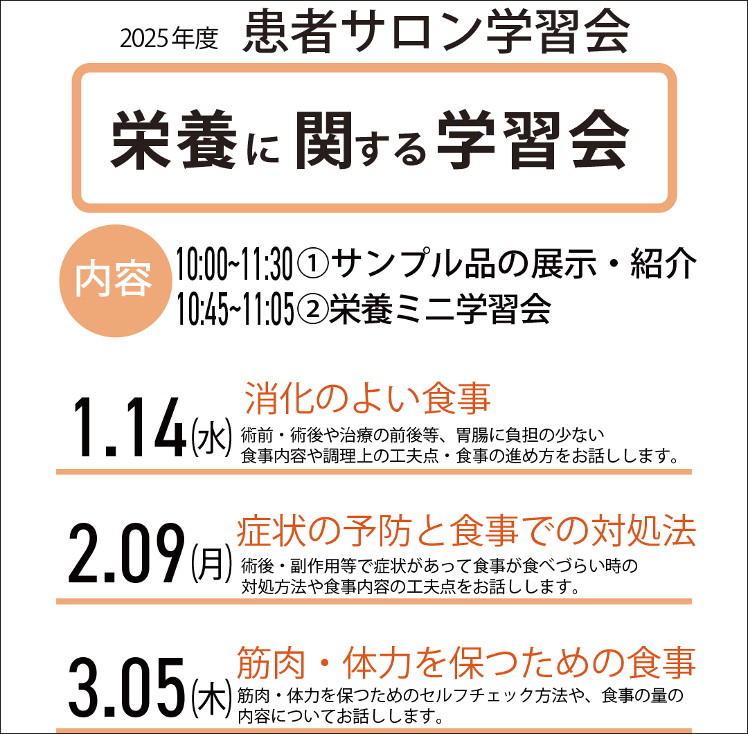※学習会、がんピア・サポートサロンは当院以外の患者さん、ご家族も参加できます。