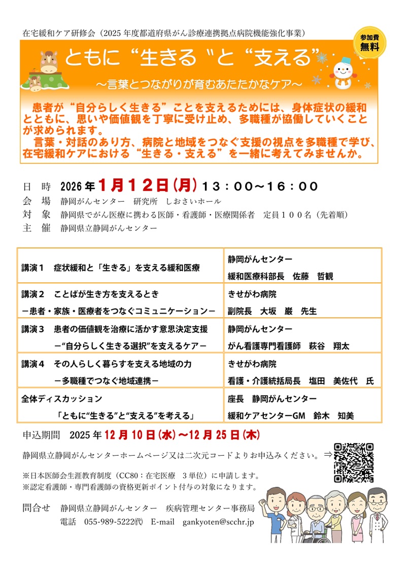 対 象 静岡県でがん医療に携わる医師・看護師・医療関係者 定員100名(先着順)