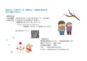 | 第10回 | 3月19日(木) | 生活を支える、QOL 静岡がんセンター 作業療法士 田尻寿子 |